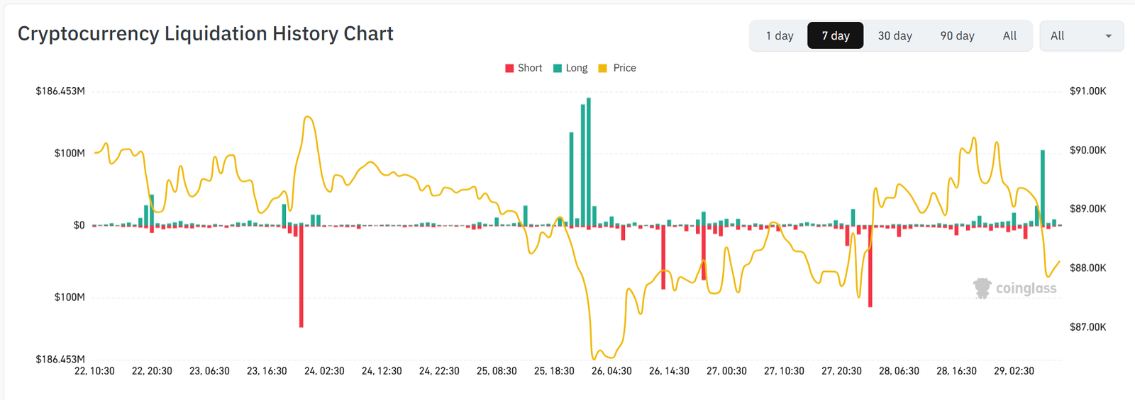 BTC pared earlier gains and fell back to $87K levels, with Friday’s $8.5 billion BTC options expiry potentially taking the price further lower. On Wednesday, CoinGape alerted about an upcoming Bitcoin price crash this week.